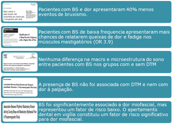 O que eu verifiquei nestes estudos é uma associação fraca entre bruxismo do sono X DTM. Isso considerando os estudos que utilizaram o método considerado gold standart, a polissonografia.
